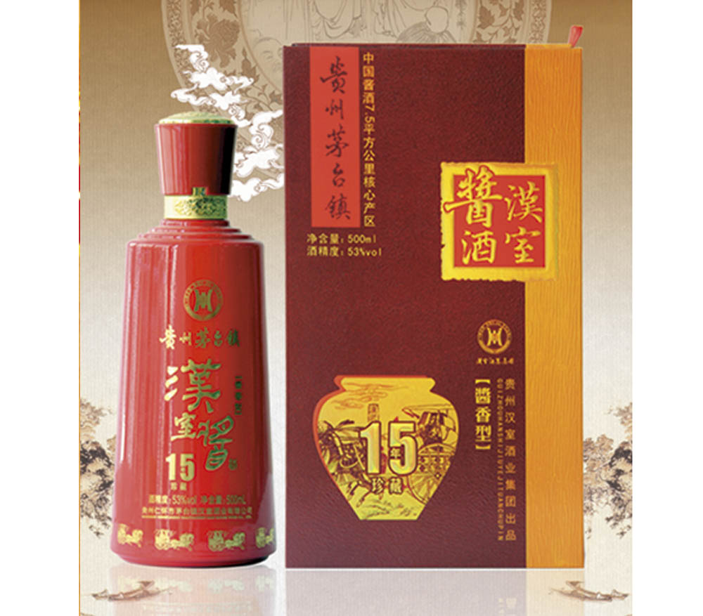 貴州漢室酒業集團是集白酒生產、銷售為一體的仁懷市首批規模企業、仁懷市市政府特別推薦企業。公司成立于1999年,坐落于中國醬酒7.5平方公里核心產區,占地面積15畝,擁有生產窖池60余個,年產大曲醬香酒700噸,庫存大曲茅香年份酒1萬噸,固定資產凈值1.8億。公司先后獲得“政府特別推薦企業”、“中國知名品牌”、“3A級信用企業”、“綠色生態標桿企業”、“國際綠色產業協會理事單位”。產品榮獲貴州省著名商標、巴拿馬紀念獎、南京國際溫泉盛典MAB(U.S.A)“全球指定白酒企業”唯一用酒、“中國有機綠色健康名酒”。